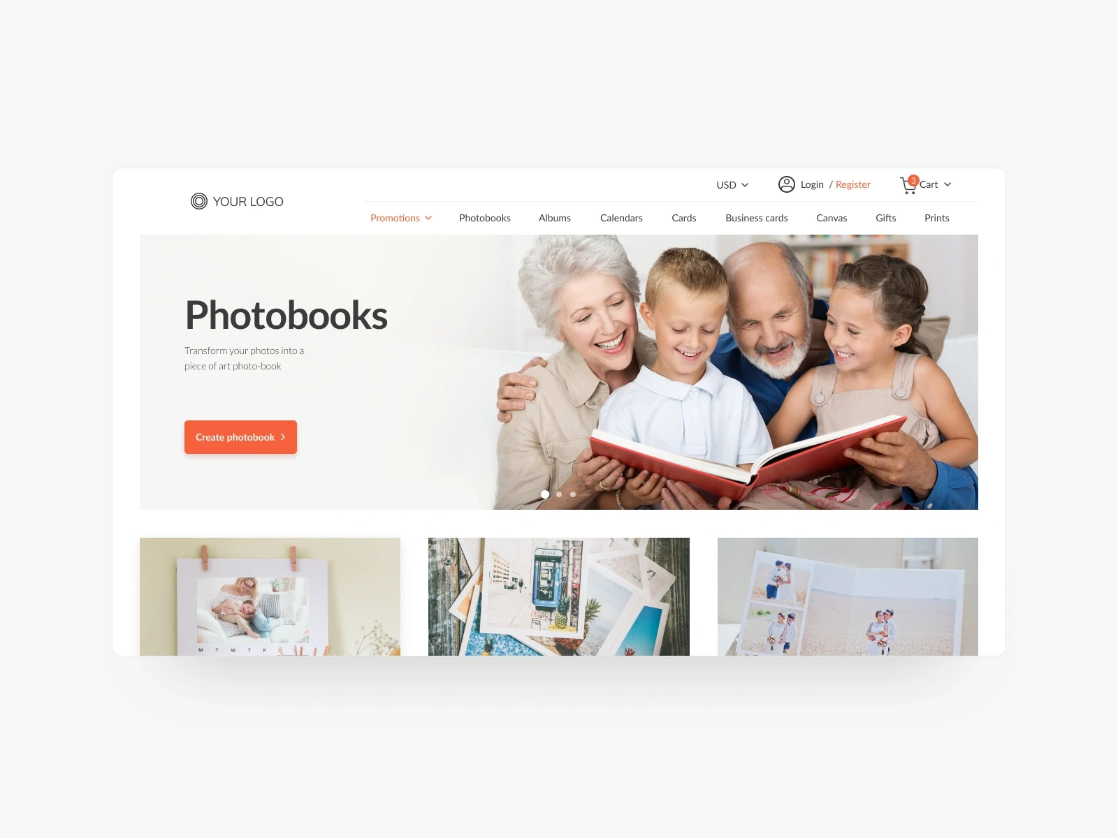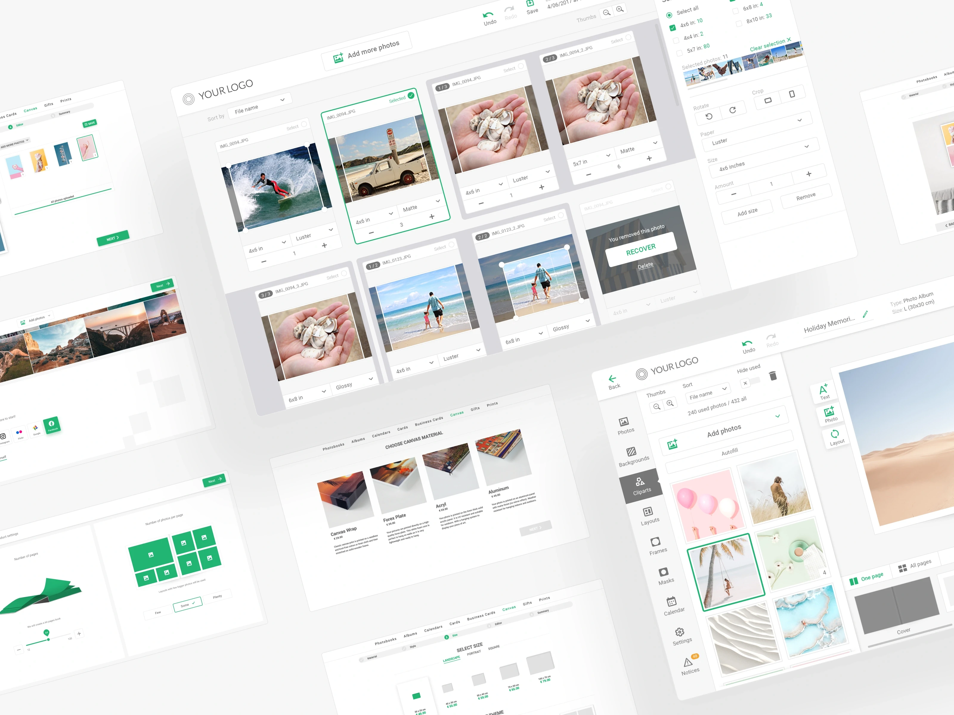 During 4 years I was able to create new, unified key visual for all web photo products editors, design 2 totally new products (Smart Creation & Pro Editor) and redesign from a ground up Prints Editor. I also introduced the responsive versions, created a Design System and redesigned twice the ecommerce and the company's website (one of which got Honorable Mention on Awwwards, Web Guru and other platforms).
